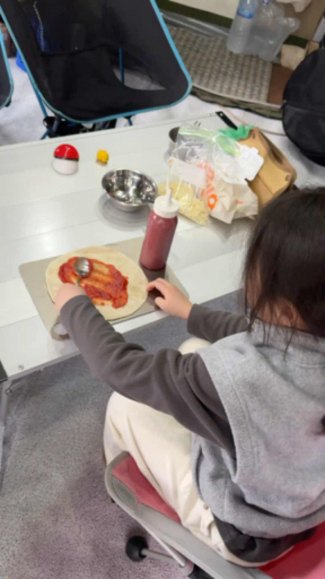 화목난로 오븐으로 또띠아 피자 만드는 방법 1. 또띠아 깔고 2. 피자 소스 도포하고 3. 피자 치즈 뿌리고 4. 3번까지 한번 더 반복 5. 토핑 올리고 6. 오븐에 넣고 20분 뒤 피자 확인 토핑은 원하는거 다 올려보는 맛이 있네요 오븐 시간은 150도 기준이에요!