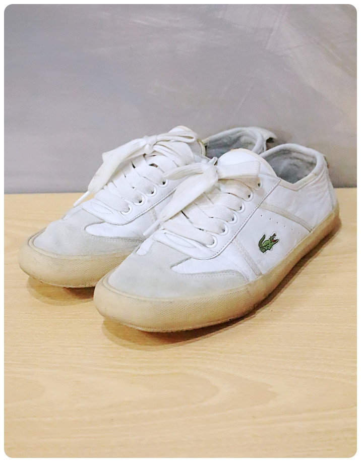 [260] Lacoste Contest Sneakers *Size : UK 7 발볼 9.5 뒷굽 2.5 바닥 27 *Condition C+ 빈티지한 사용감 존재 (뒷굽 마모감) 💡실측은 재는 사람에 따라 1 - 3 cm 정도의 차이가 날 수 있습니다. 💡빈티지 제품임으로 작은 오염이나 사용감이 존재 할 수 있습니다. 💡빈티지에 민감하신분은 신중한 구매 부탁드립니다. 💡빈티지 특성상 교환/환불이 불가하오니 신중한 구매 부탁드립니다. 💡상점명 : 라움빈티지 #라움빈티지 #라코스테신발 #레더스니커즈 #로우탑 #라코스테운동화 #라코스테260