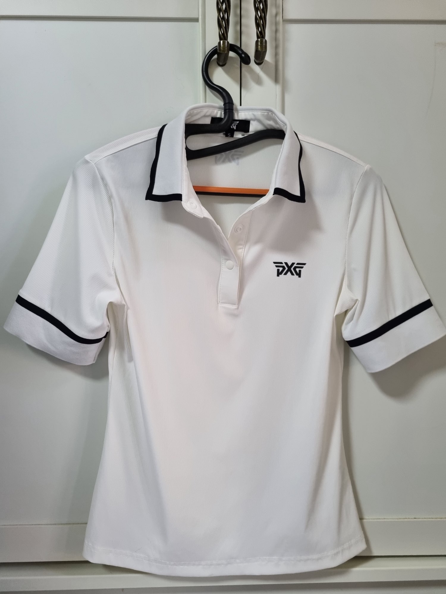 PXG 여성 골프 폴로 티셔츠입니다:) 사이즈는 S입니다 사용은 했지만 깨끗합니다! 택배비는 착불로 보내드립니다! 무게에 따라 배송비는 조금 다를수 있습니다