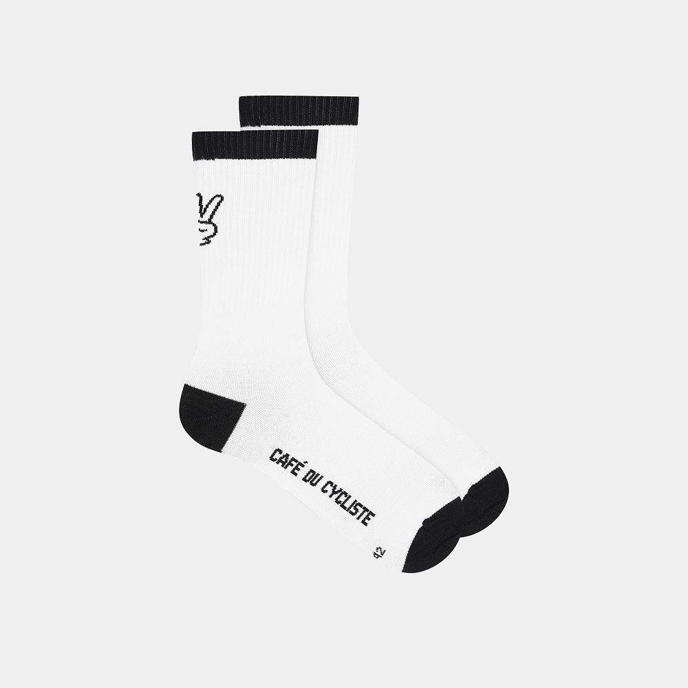 카페 드 사이클리스트 모토 아웃랜드 삭스 양말 블랙 온 화이트 공용