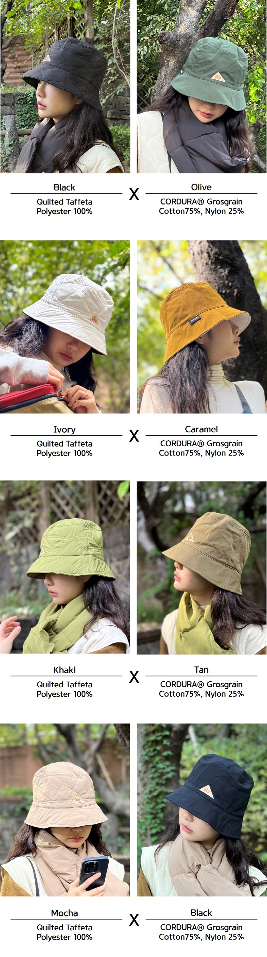 블랙X올리브, 아이보리X카라멜, 카키X탄, 모카X블랙