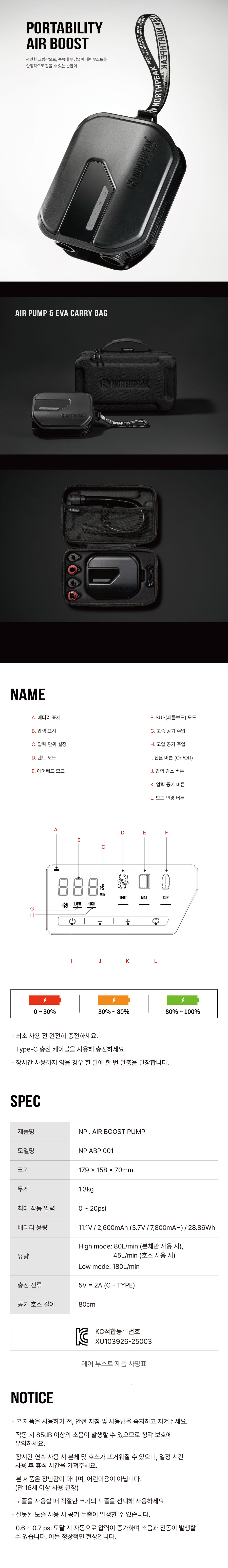 [한정수량] 노스피크 에어 부스트_매트 블랙_에어 펌프