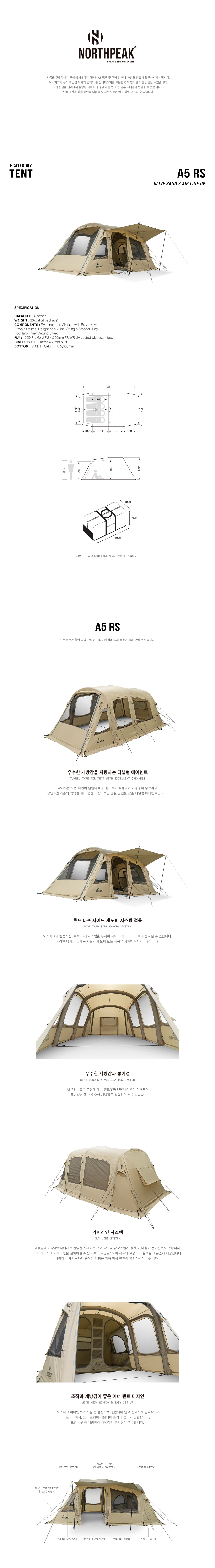 노스피크 A5 RS 에어텐트 올리브샌드