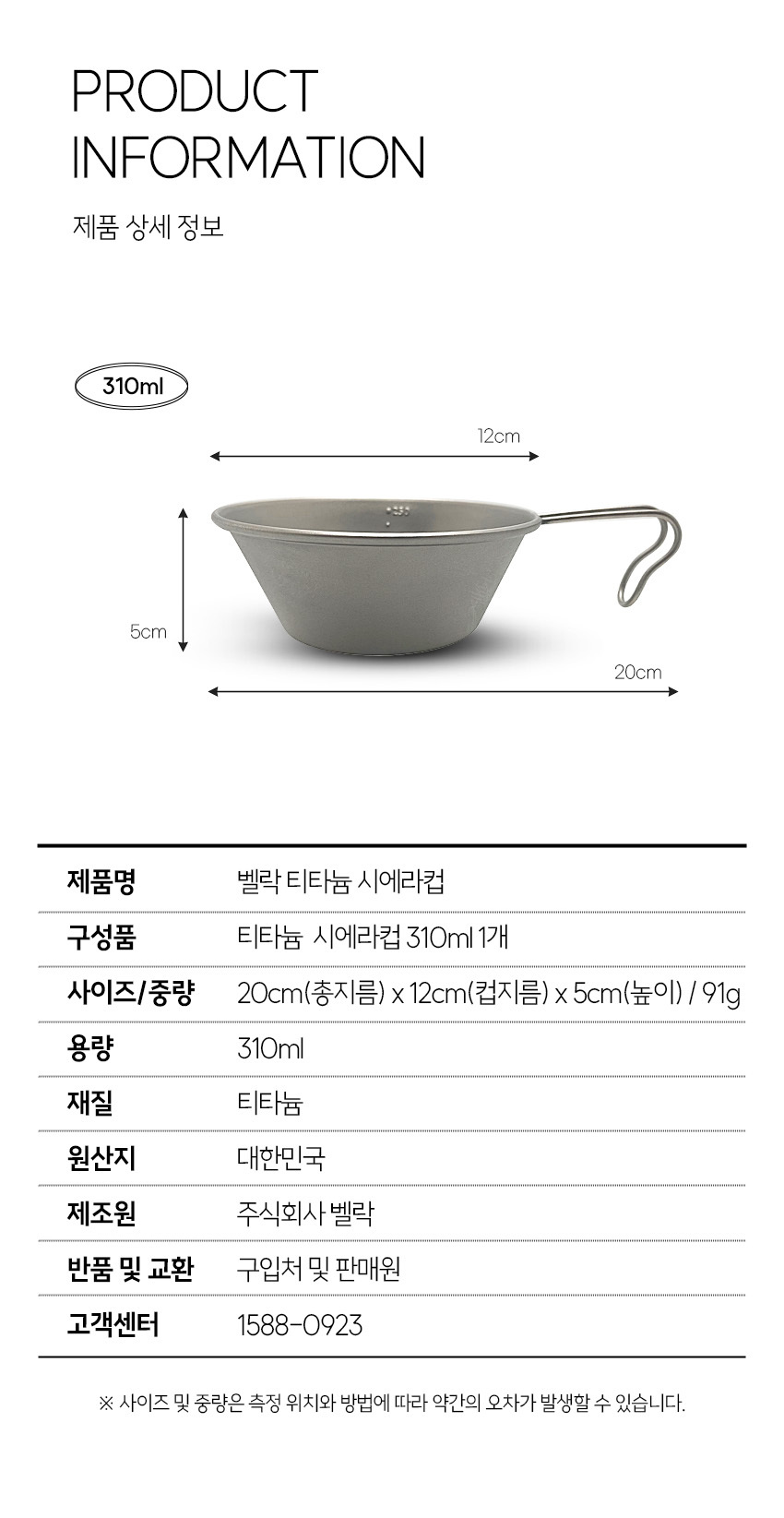 벨락 티타늄 시에라컵 310ml 백패킹 캠핑컵 캠핑그릇