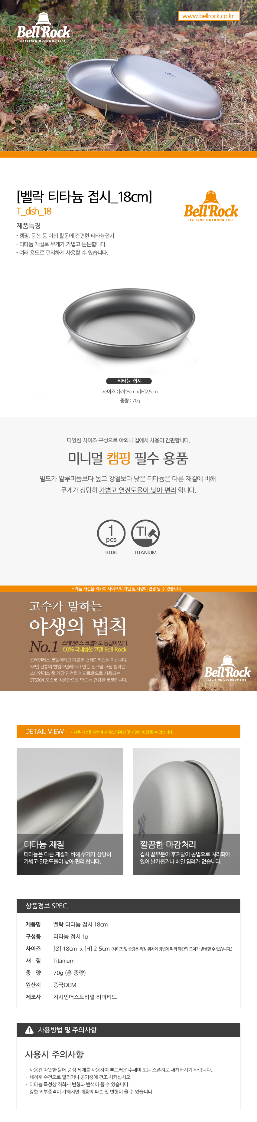벨락 티타늄 접시 (18cm) /캠핑접시/야외접시