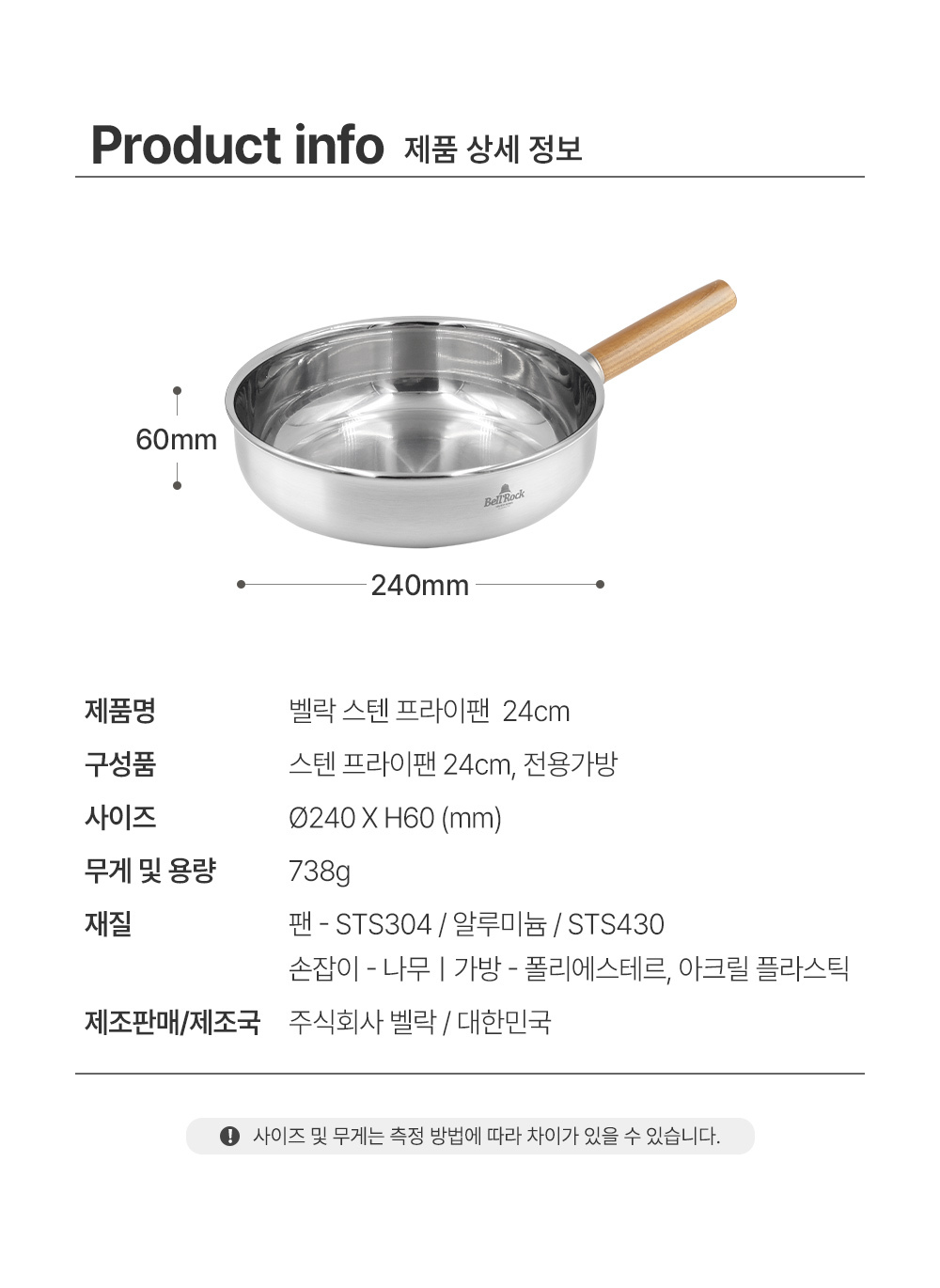 벨락 스텐 프라이팬(24cm) (전용케이스 포함) 캠핑/야외/스텐프라이팬