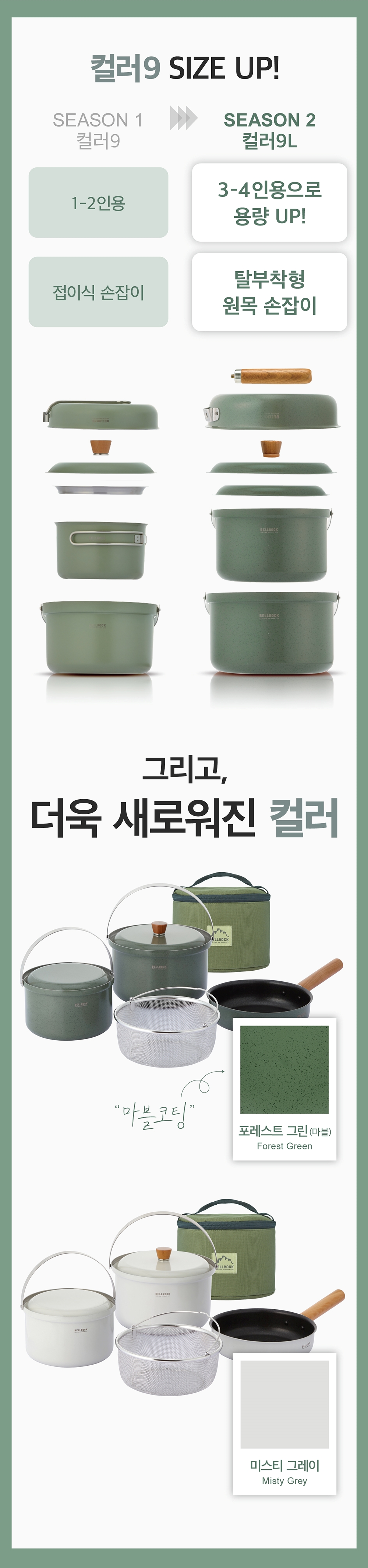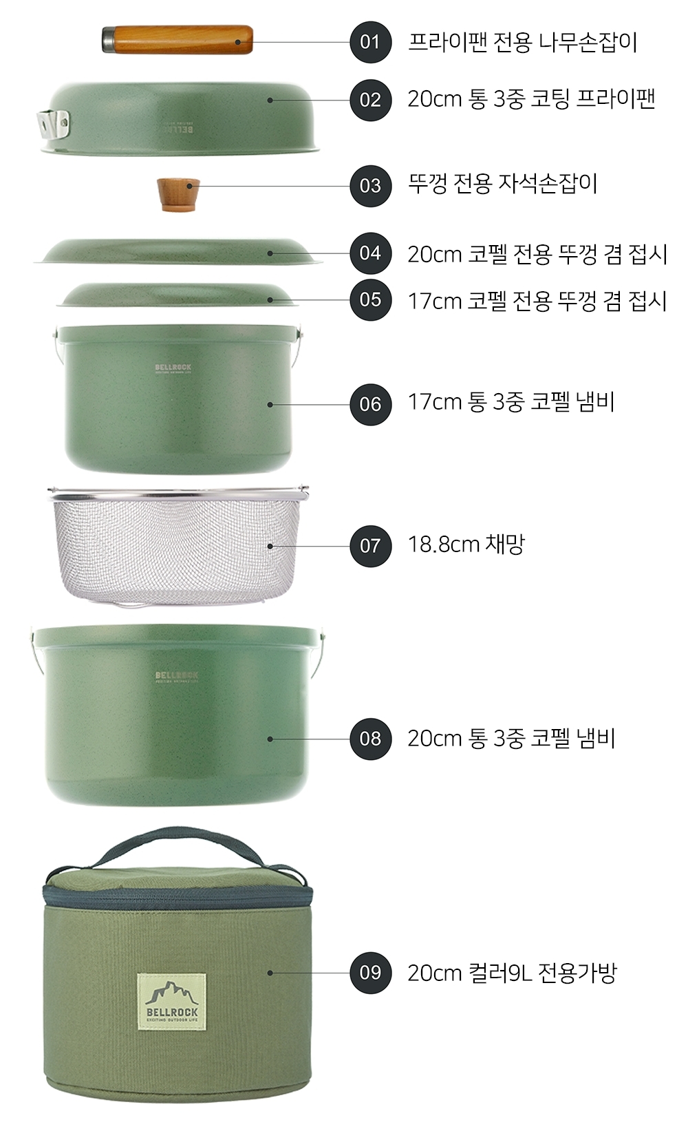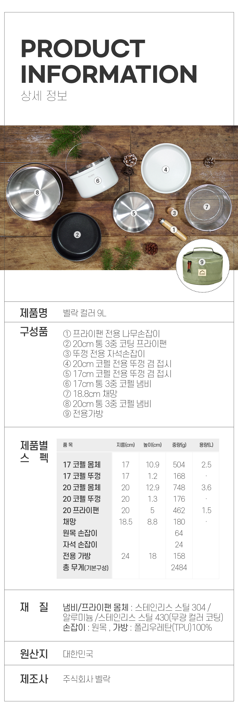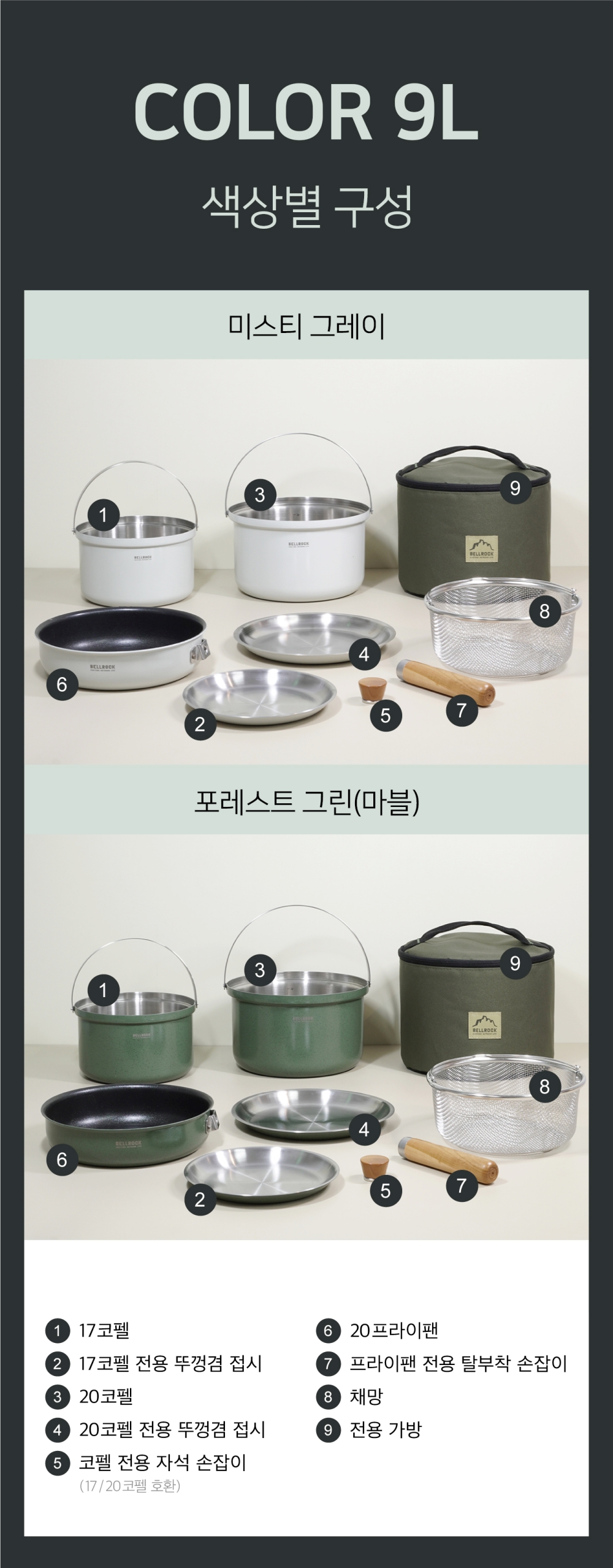 벨락 통3중 컬러9L 코펠 4인 세트 미스티그레이