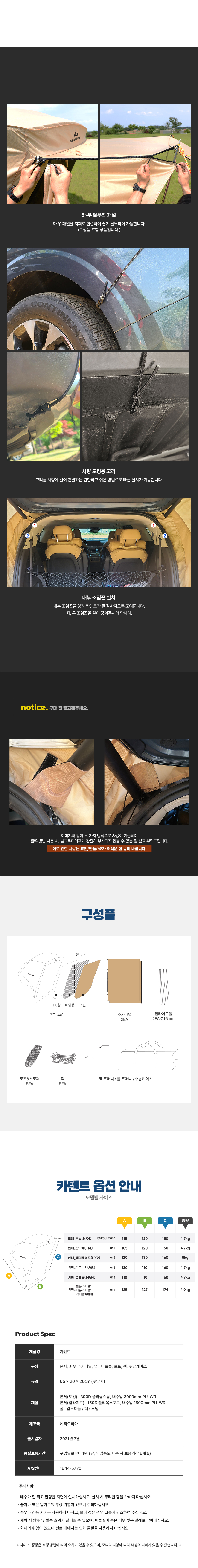 [스노우라인] 카텐트 - 현대, 기아 차박텐트