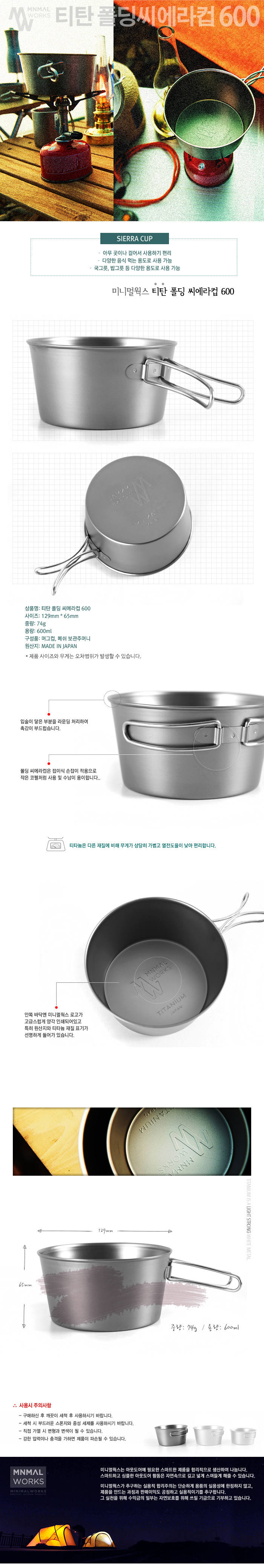 [미니멀웍스] 티타늄 폴딩 시에라컵 600ml - 접이식손잡이/친환경금속