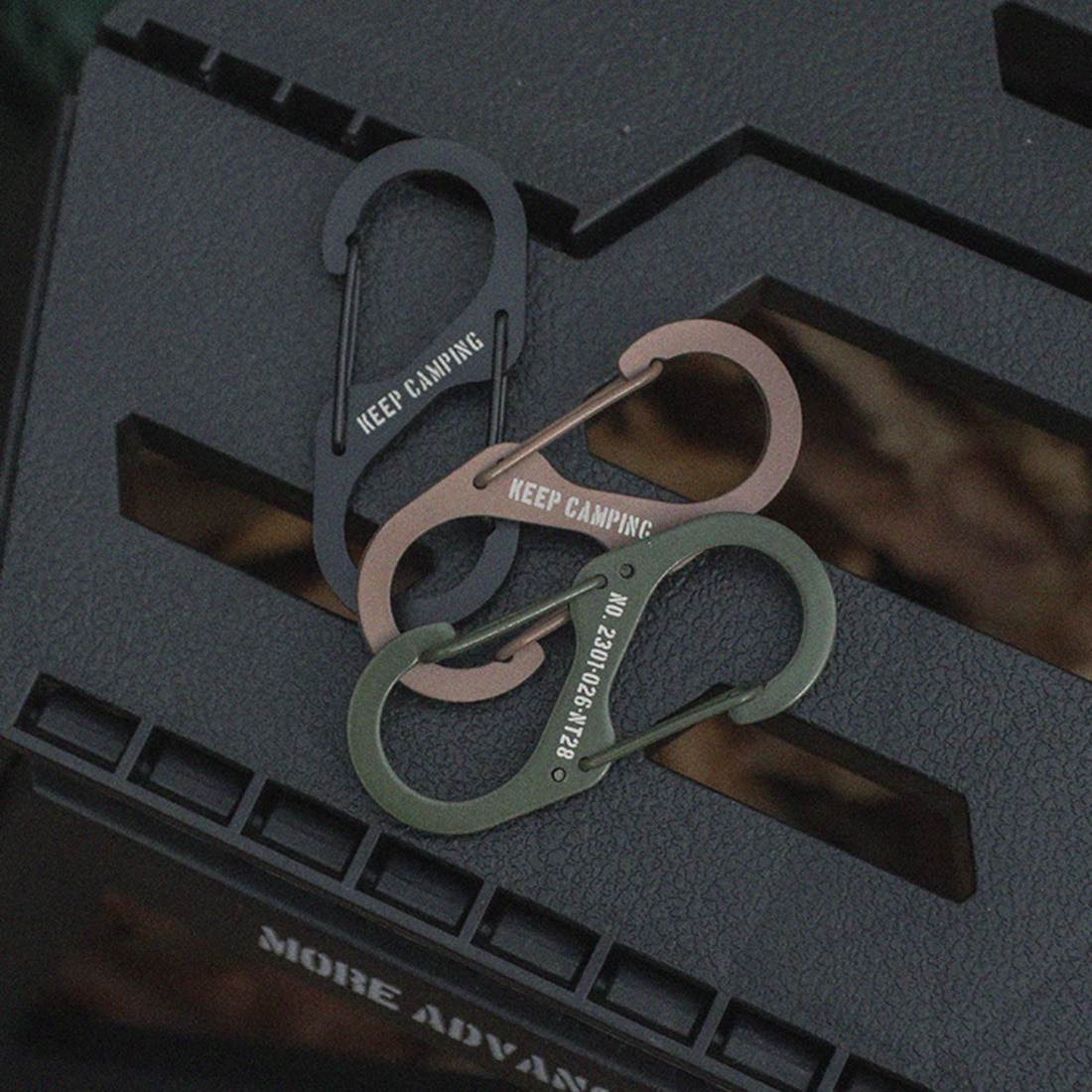 KEEP 캠핑 S형 레터링 스틸 양방향 카라비너 스트링 데이지체인 고리 비너