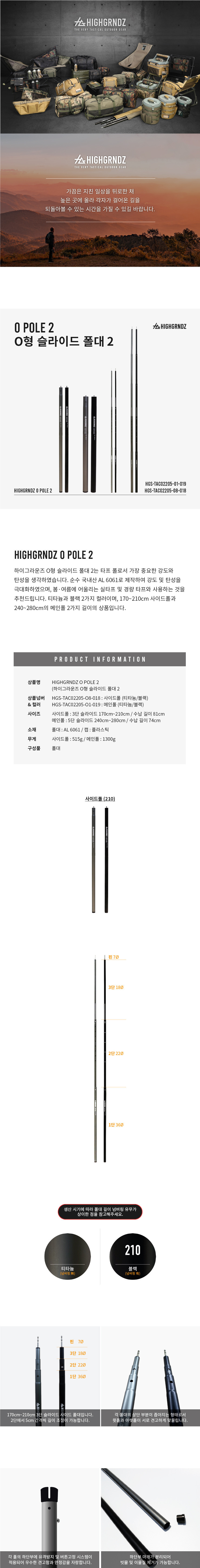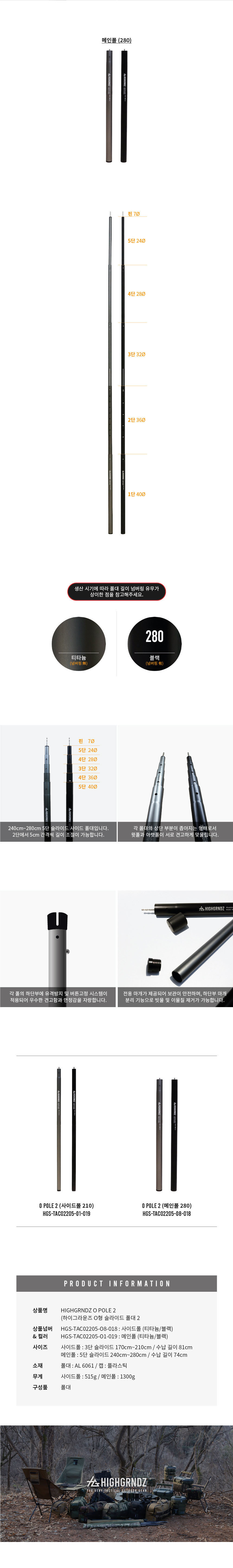 하이그라운즈 캠핑 경량 O형 슬라이드 높이 조절 듀랄루민 타프 메인 사이드 폴대 폴 ver.2