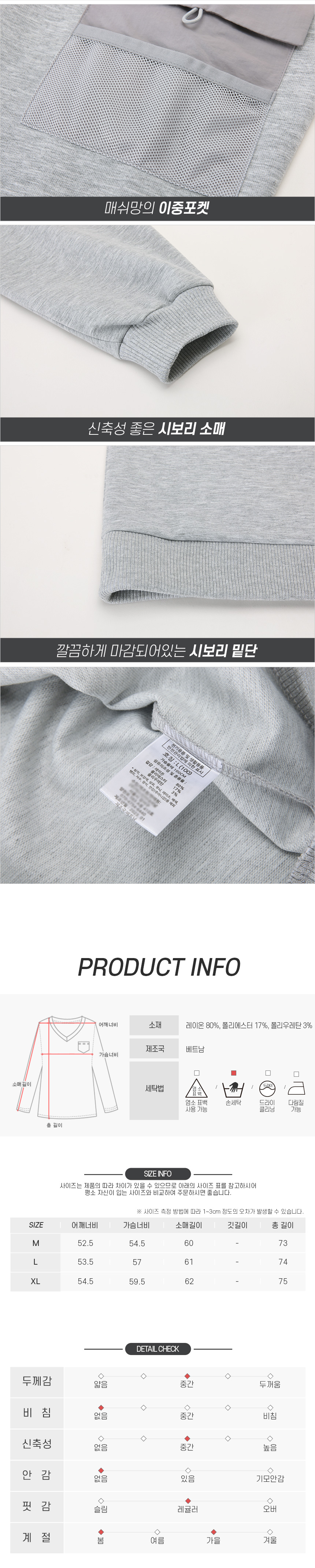[파파브로] 남성 간절기 오버핏 암포켓 맨투맨 HS-TSA-BFL513