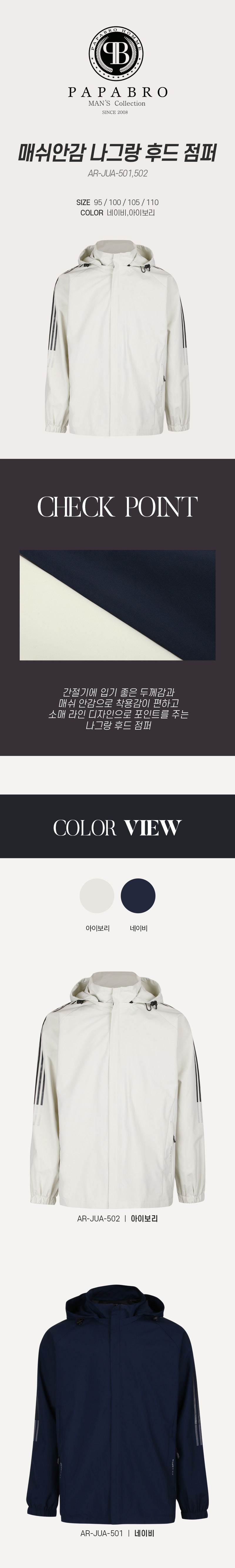 [파파브로] 봄가을 메쉬안감 나그랑 후드 점퍼 AR-JUA-501,2