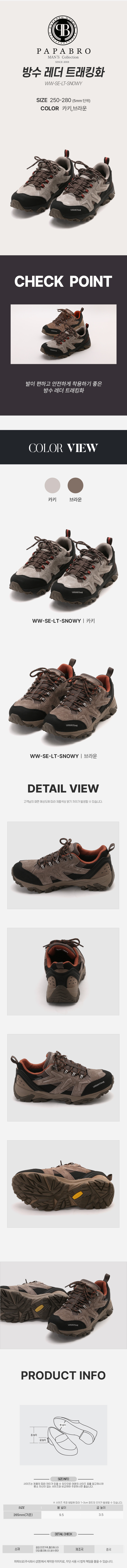[파파브로] 방수 기능 남성 레더 트레킹 슈즈 WW-SE-LT-SNOWY
