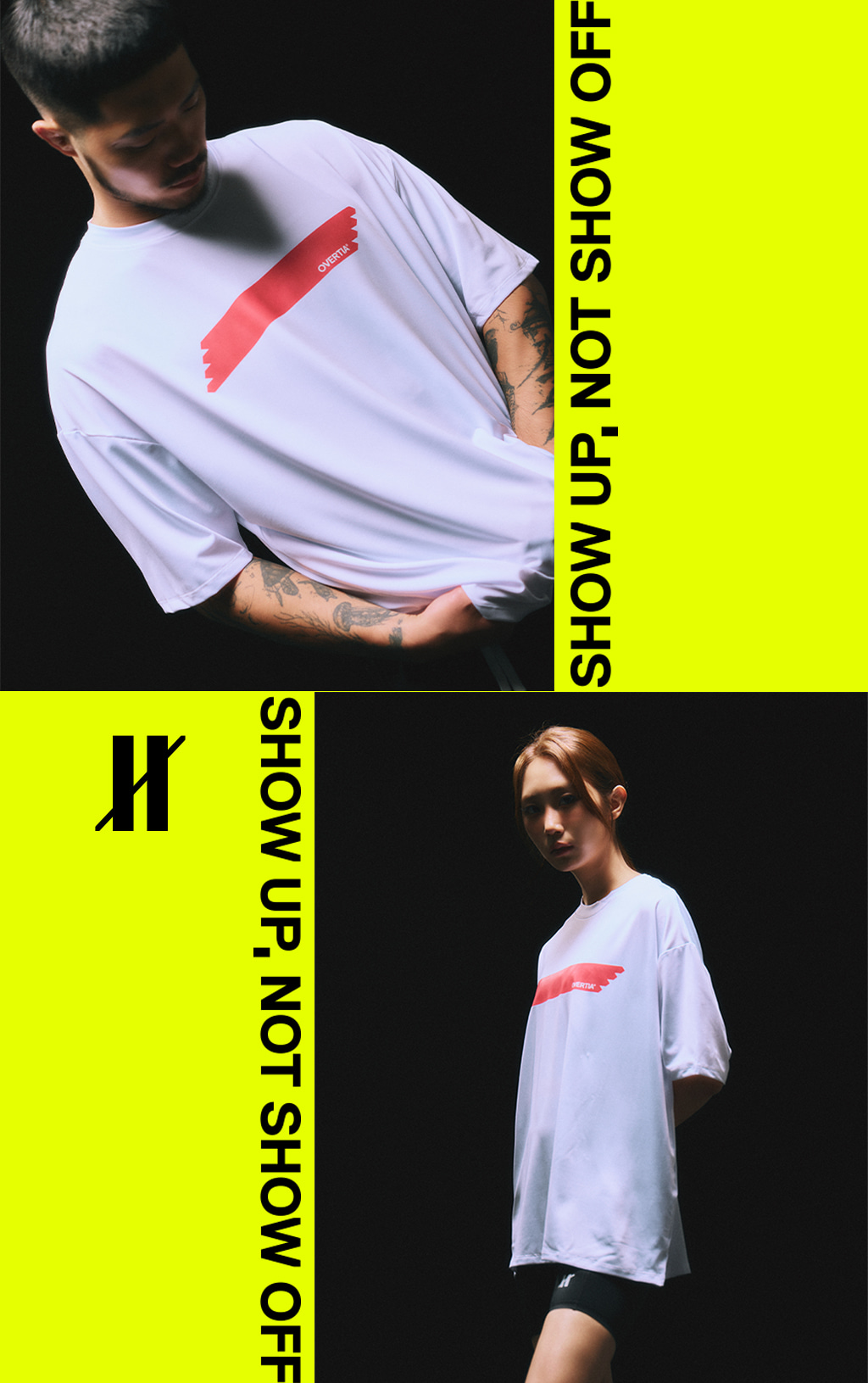 오버셔 스포츠 기능성 핑크 하이라이트 공용 반팔티