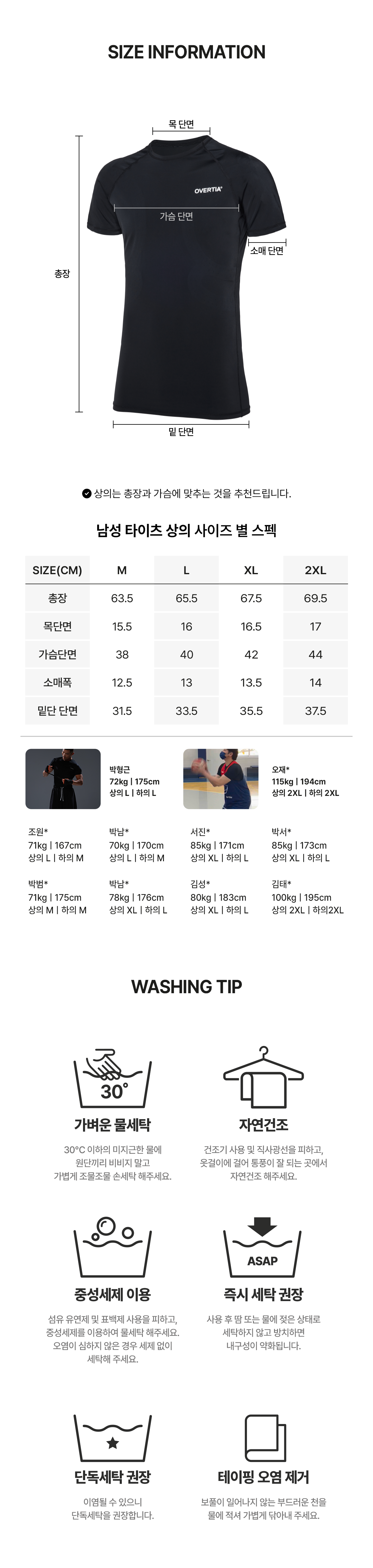 오버셔 스포츠 남성 반팔 상의 타이즈