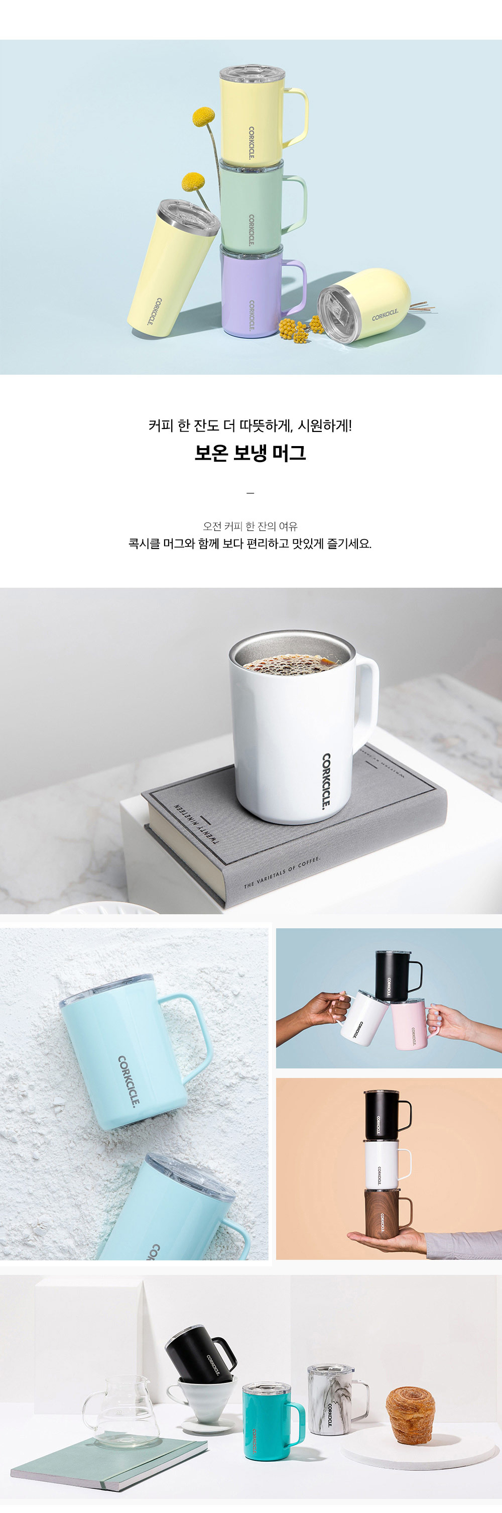 콕시클 프리미엄 머그 텀블러 470ml 진공 보온 보냉 손잡이 텀블러 머그잔 뚜껑 그란데