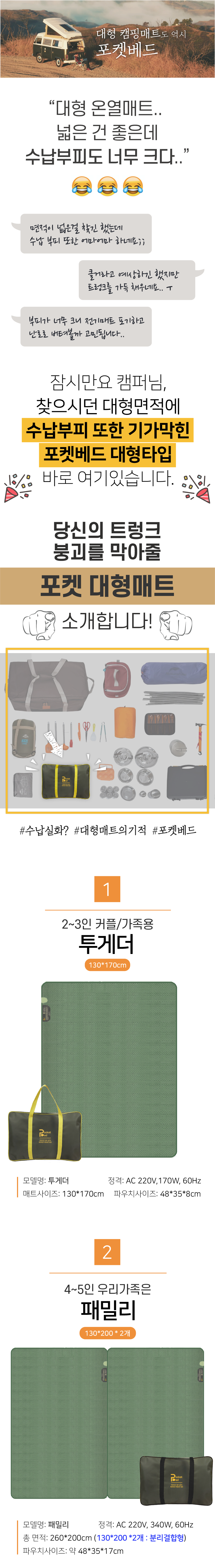 포켓베드 여행용 온열매트 포켓베드_중대형 (텐트사이즈)
