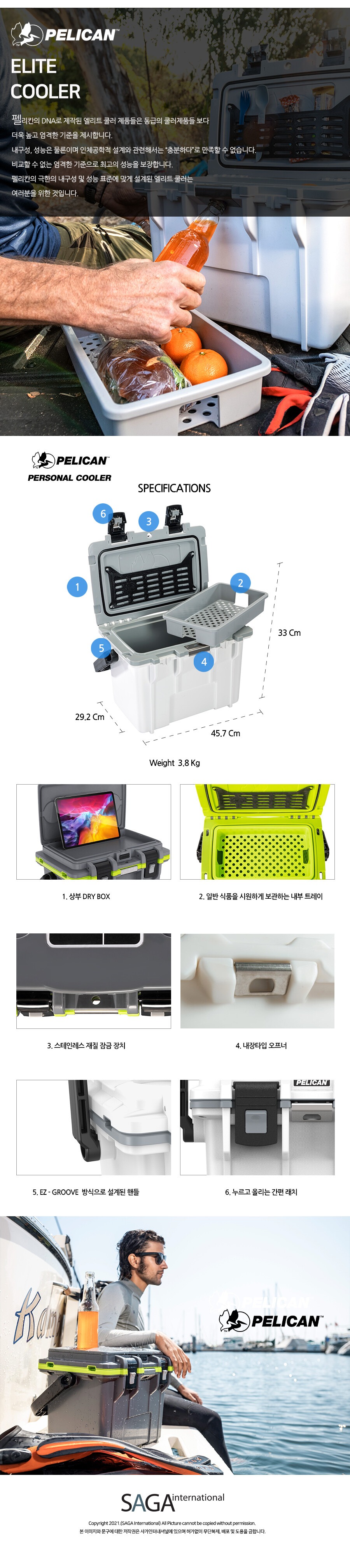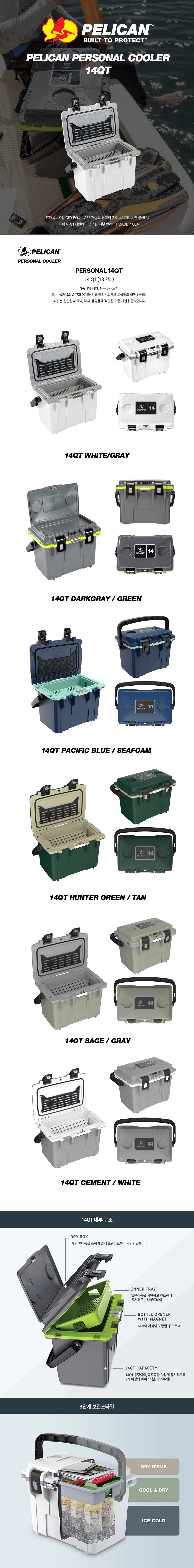 [Pelican Elite Coolers] 펠리칸 아이스박스 엘리트 쿨러 14QT (13.25L) 헌터그린/탄