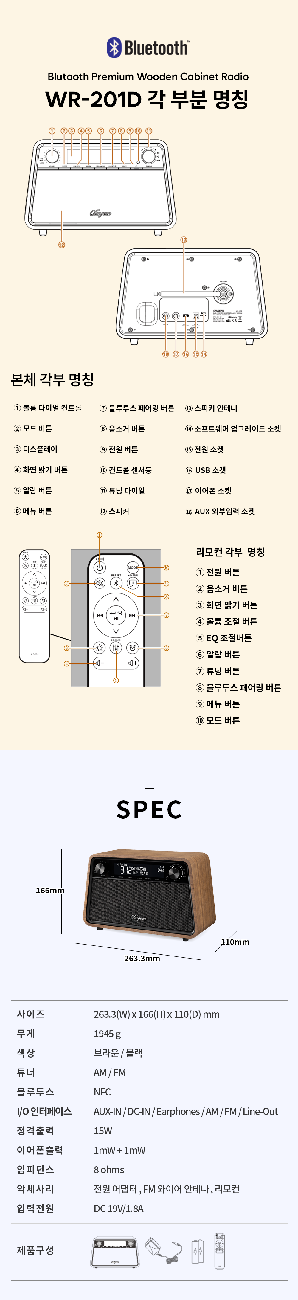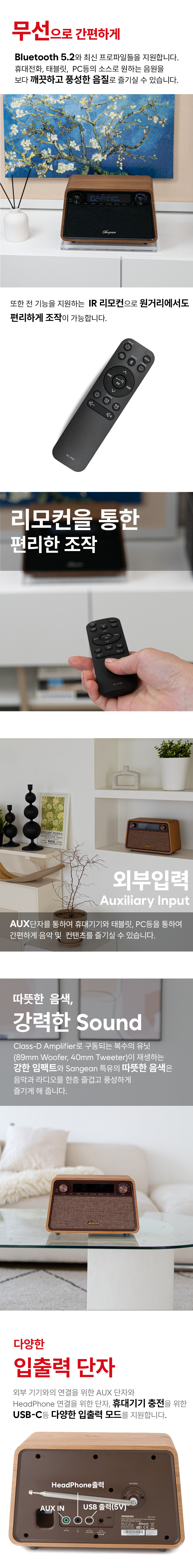 [정식수입] 산진 WR-201D 블루투스 라디오 프리미엄 스피커 감성 캠핑