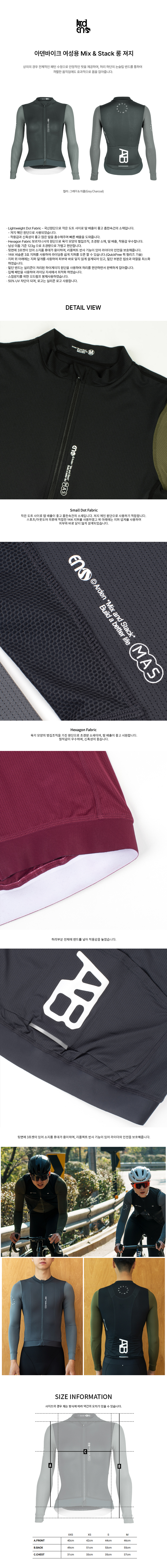 아덴바이크 여성용 Mix and Stack 롱 져지 / 그레이 차콜