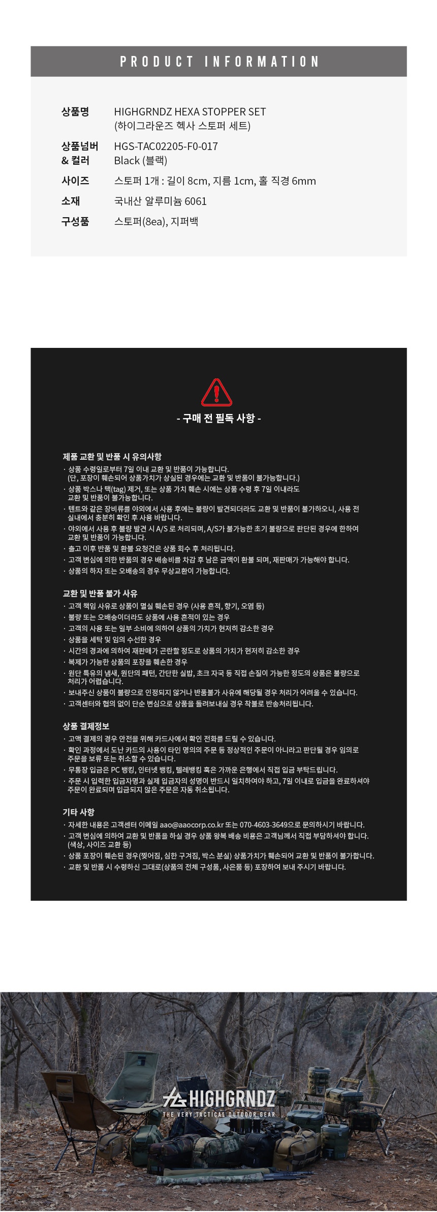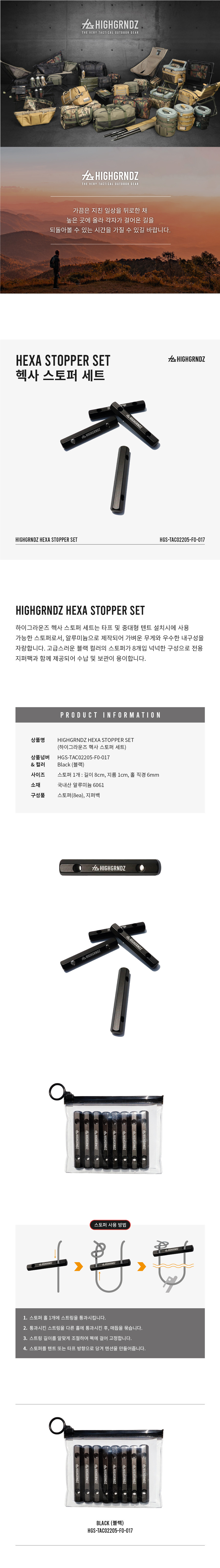 하이그라운즈 캠핑 텐트 타프 헥사 로프 블랙 막대 스토퍼 8P 세트