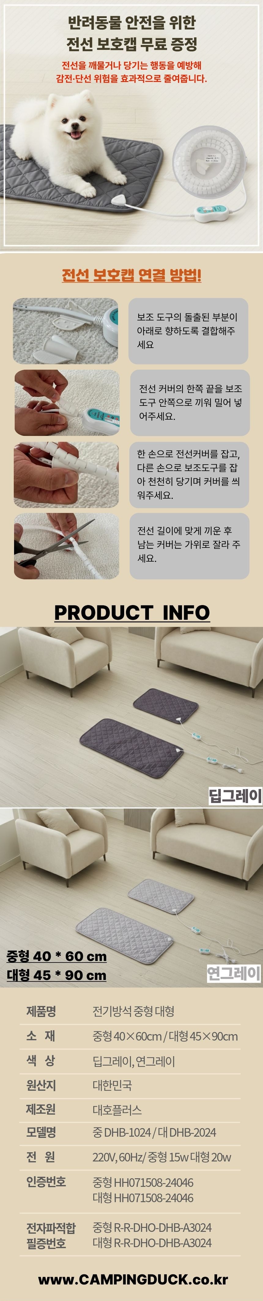 [캠핑덕] 강아지 반려동물 탄소 전기방석 전기매트 고양이 장판 쇼파 캠핑 중형