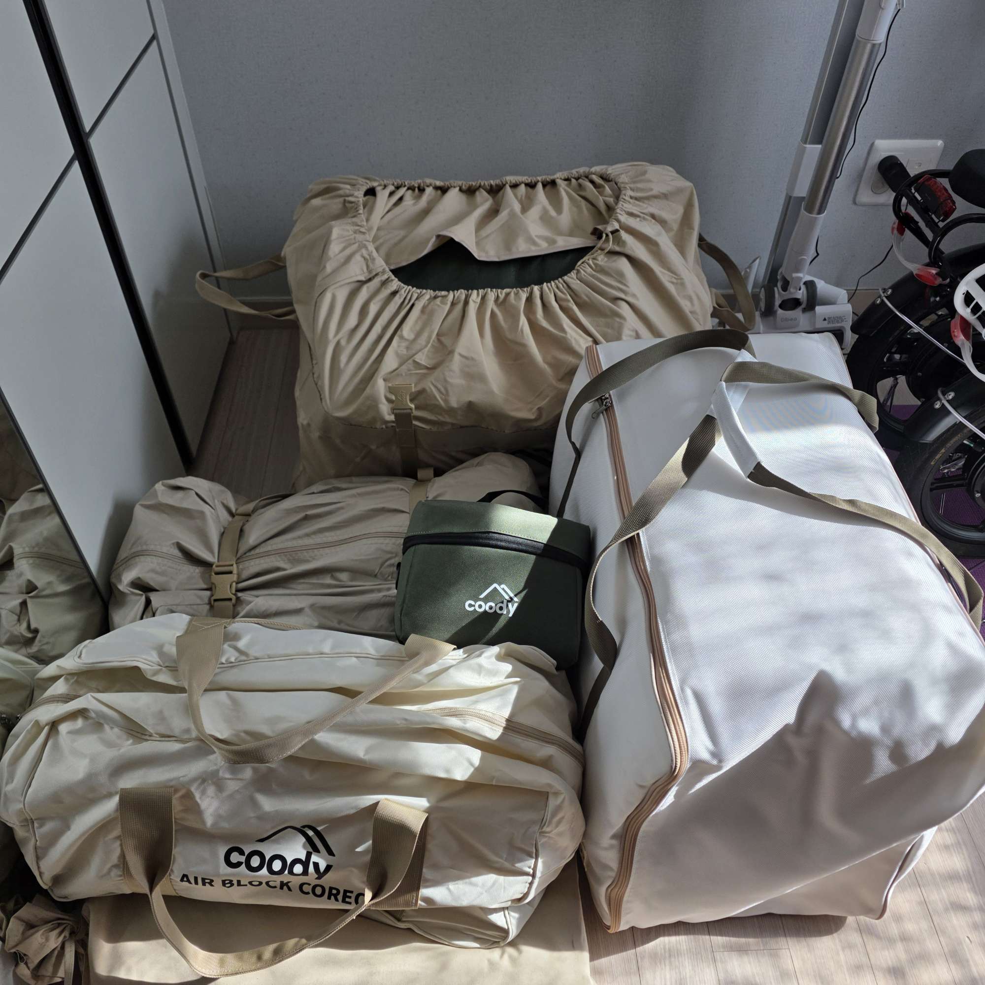 쿠디 루미 에어텐트 ss급 판매합니다 @구매시기 - 24년 @사용횟수(1회) 1.본체,러그,전실분리형바닥-실내캠핑장1회 2.업라이트폴, 수동펌프 - 미사용 3.뷰공간메쉬 - 미사용 4.루프플라이(타프) - 미사용 @별매품 1. 쿠디 신형 에어메트 코레오 3인 - 새상품 2. 쿠디전동에어펌프 - 새상품 3. 전실tpu - 새상품 사용횟수보시면 아시겠지만 보시면 완전 새거입니다. 다만, 가방은 밟고들다가 찢어져서 수선해놓았습니다. 러그도 1회 사용후 싹 세탁까지 완료해놨습니다. 일괄금액입니다 부피가 큰 상품이라 직거래만 가능합니다 화성시 봉담, 수원시 권선구,군포 부곡, 송정 가능합니다