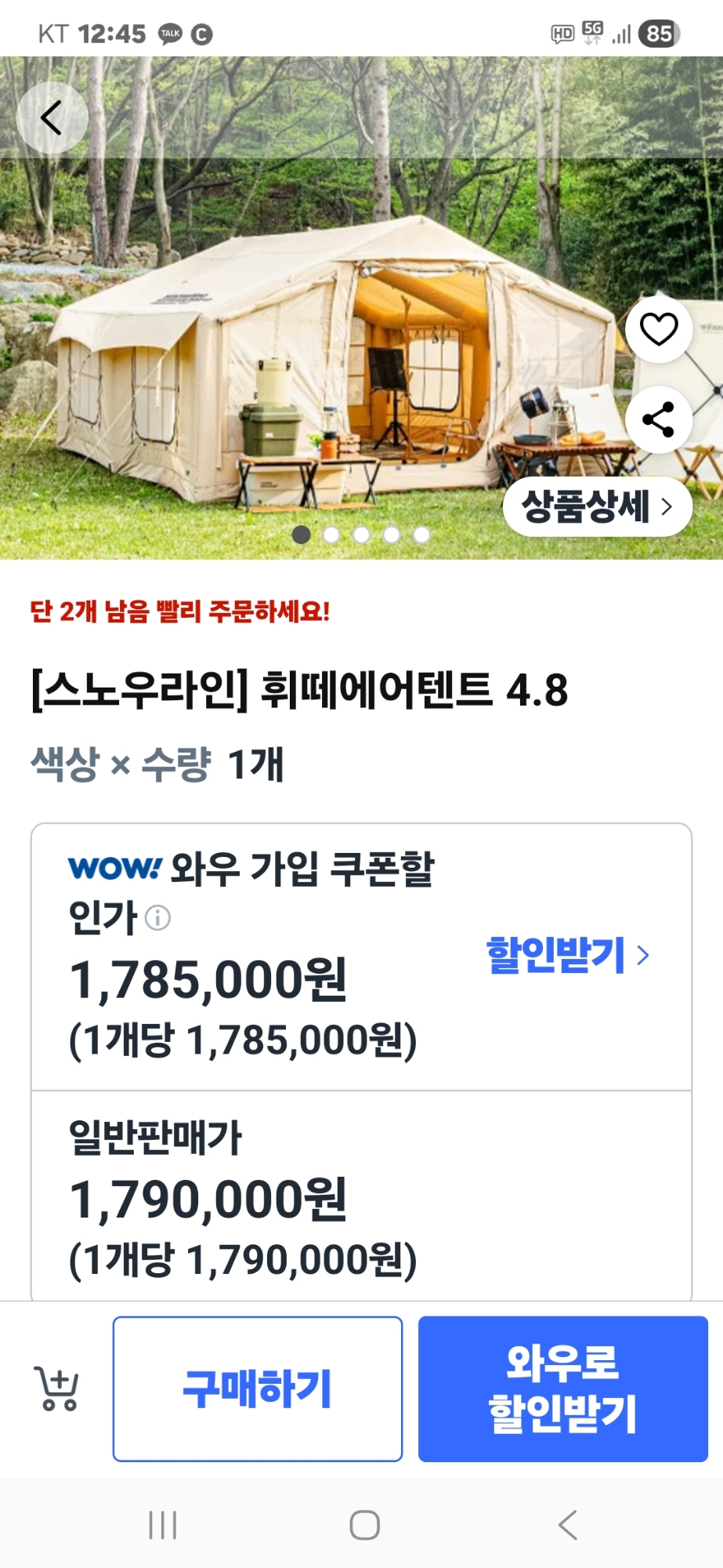 스노우라인 휘떼4.8 에어텐트