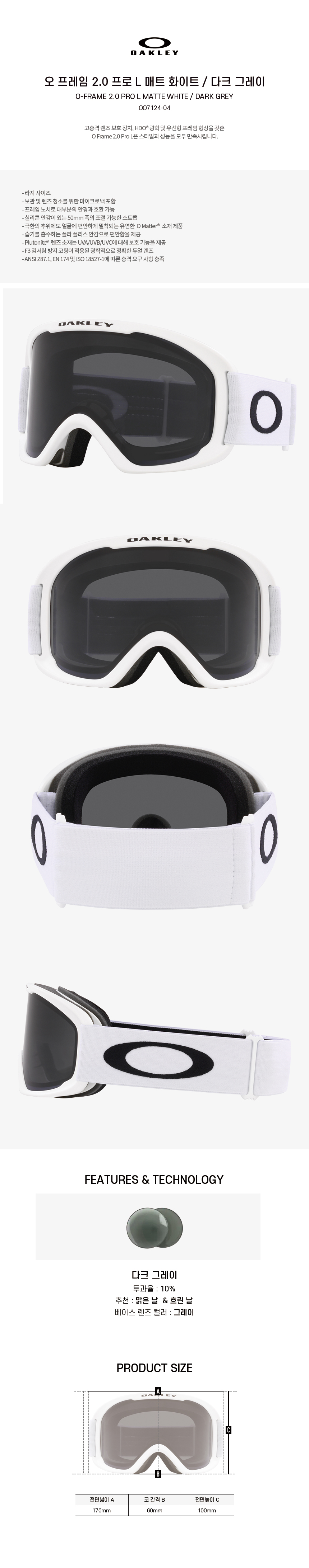 [오클리 고글] 25/26 오 프레임 2.0 프로 L 매트 화이트 / 다크 그레이 OO7124-04