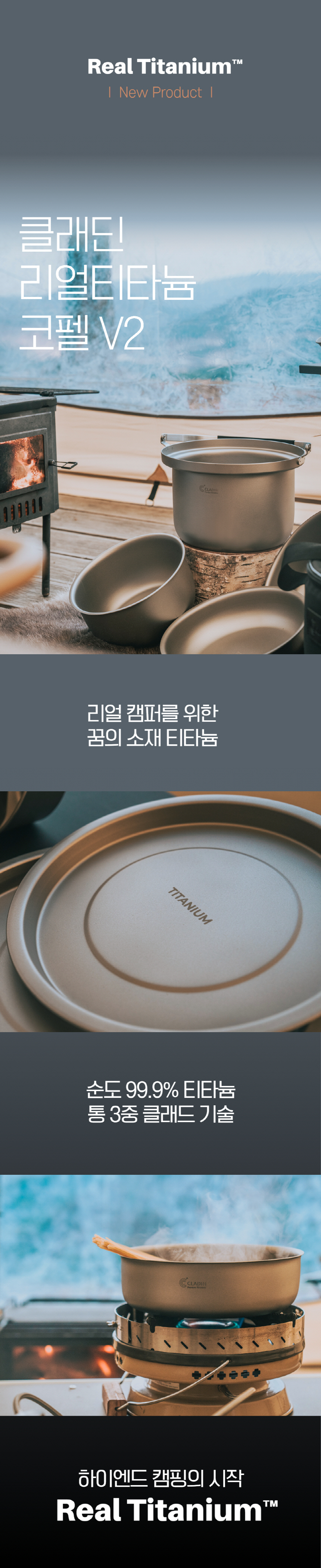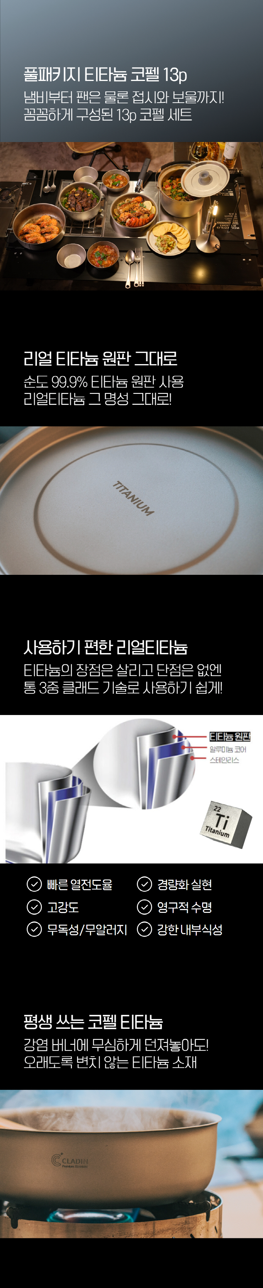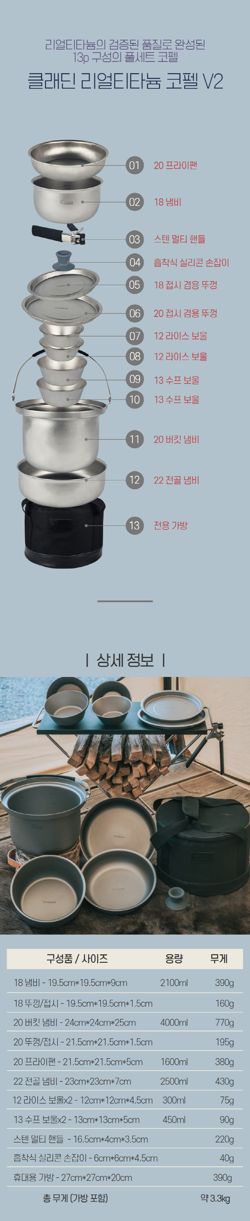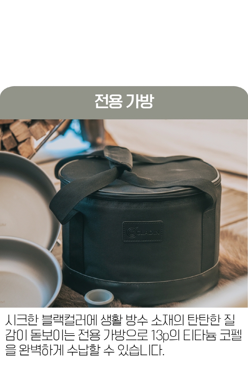 클래딘 리얼 티타늄 캠핑 코펠 V2 통3중 티타늄 코펠 세트 13p