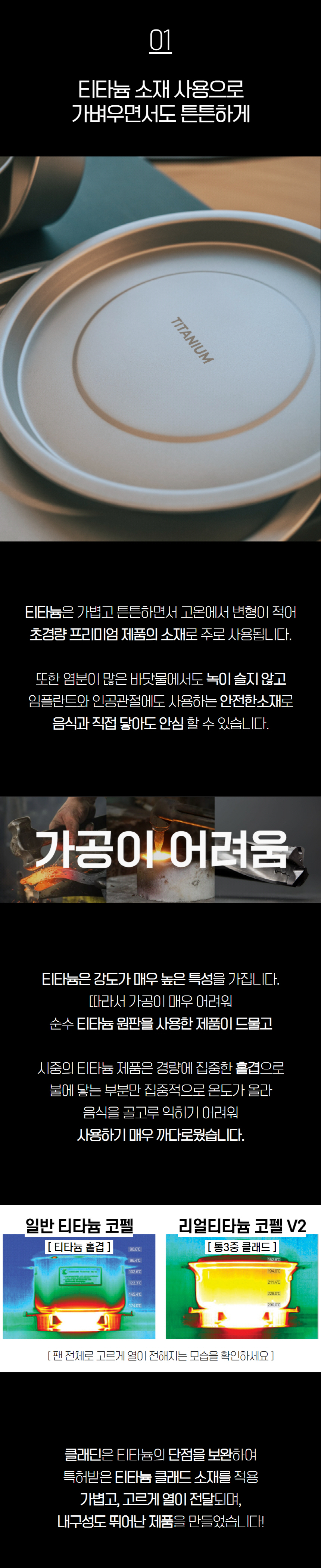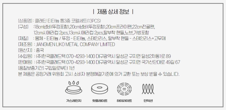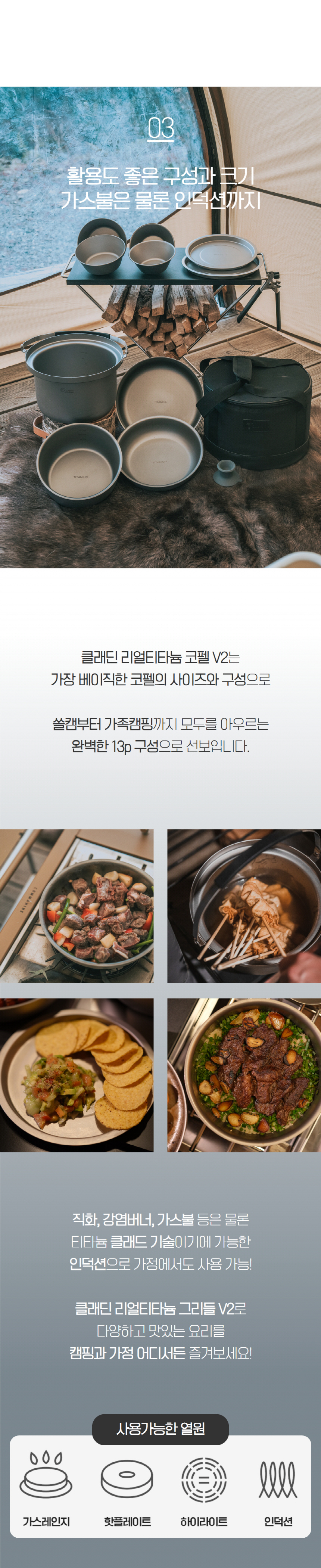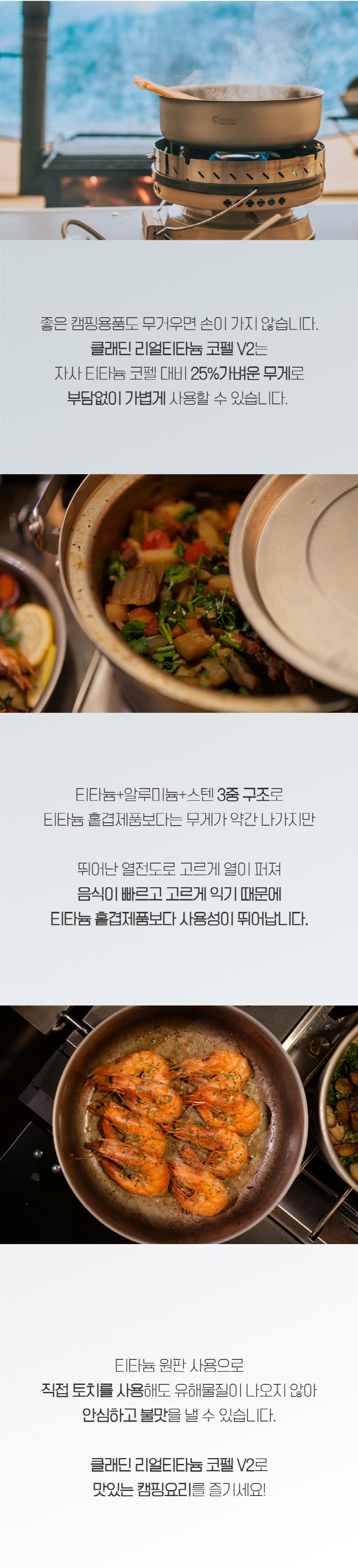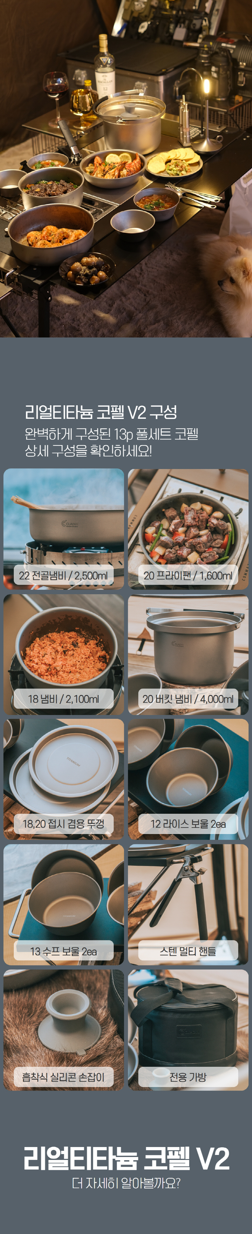 클래딘 리얼 티타늄 캠핑 코펠 V2 통3중 티타늄 코펠 세트 13p