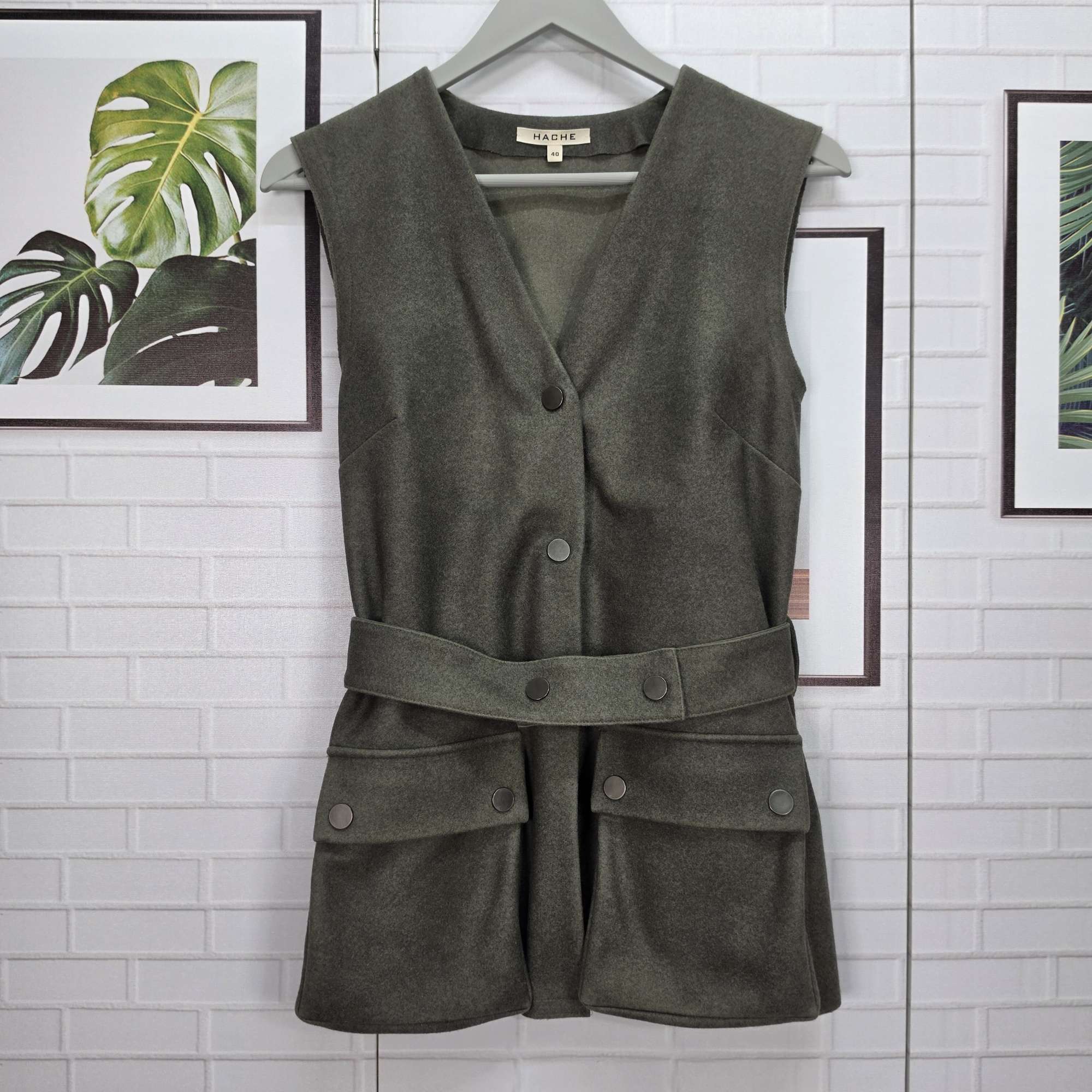 HACHE 하쉬 벨티드 포켓 울 조끼 베스트 40사이즈