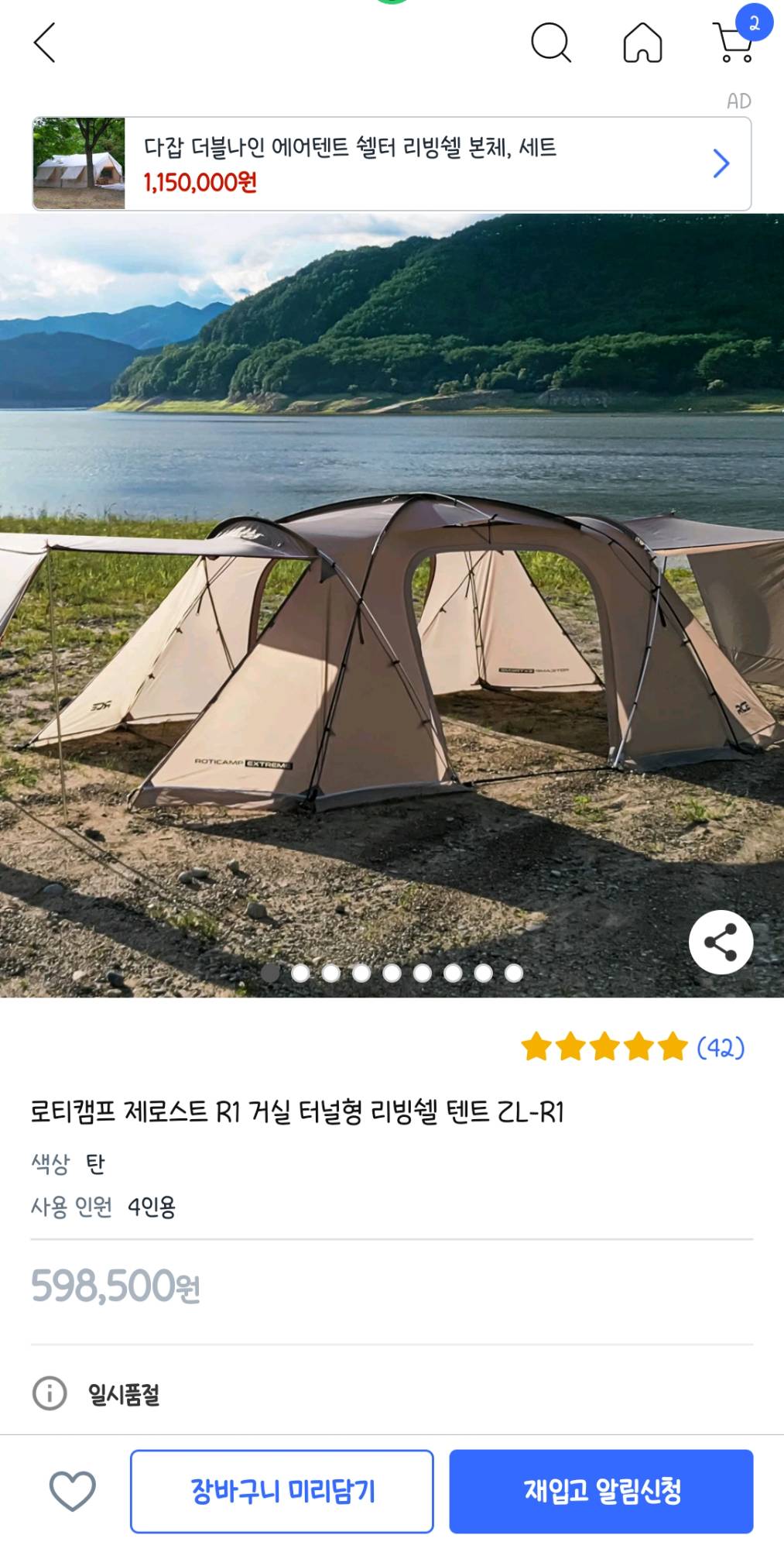 로티캠프 제로스트 R1 거실 터널형 리빙쉘 텐트 ZL-R1 새상품입니다. 이너텐트 1개있고 4인 사용가능합니다. 이너텐트 하나 추가구매시 2개도 사용 가능하고 8인 사용가능합니다. 텐트 구성품 여러개 살 필요없이 이거하나로 다 가능하니까 이것만 사시면됩니다. 미개봉싱품으로서 상상할수없는 가격에 올립니다...으....... 가성비 아주 좋을겁니다. 가족끼리 캠핑다니려고 큰맘먹고샀는데 가족들이 반대를해서.....다시 내놓습니다. 제발 가정의 평화를위해 좋은분이 가져가주세요. 자세한 기능은 상세페이지 참고해주세요. https://link.coupang.com/a/cgCWx6