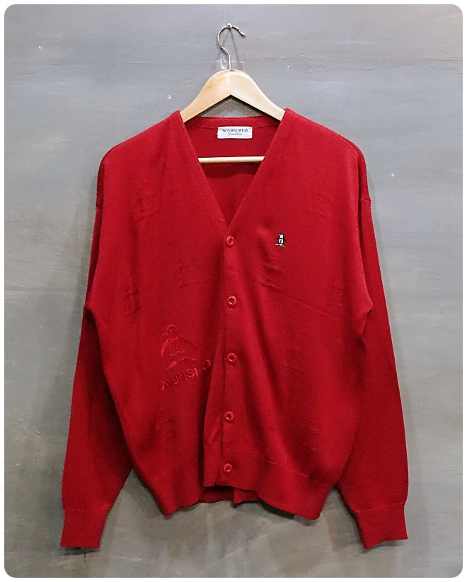 [F] 먼싱웨어 자수로고 패턴 코튼 니트 가디건